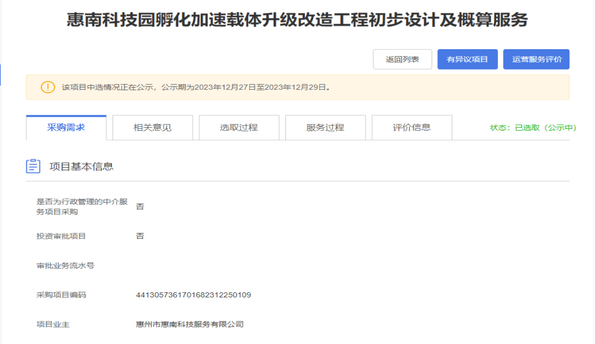 【招標(biāo)公示】惠南科技園孵化加速載體升級改造工程初步設(shè)計(jì)及概算服務(wù)