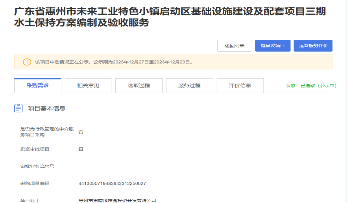 【招標(biāo)公示】廣東省惠州市未來工業(yè)特色小鎮(zhèn)啟動(dòng)區(qū)基礎(chǔ)設(shè)施建設(shè)及配套項(xiàng)目三期水土保持方案編制及驗(yàn)收服務(wù)