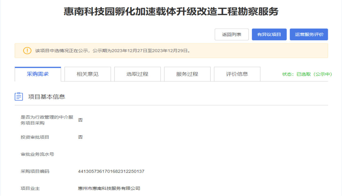 【招標(biāo)公示】惠南科技園孵化加速載體升級改造工程勘察服務(wù)