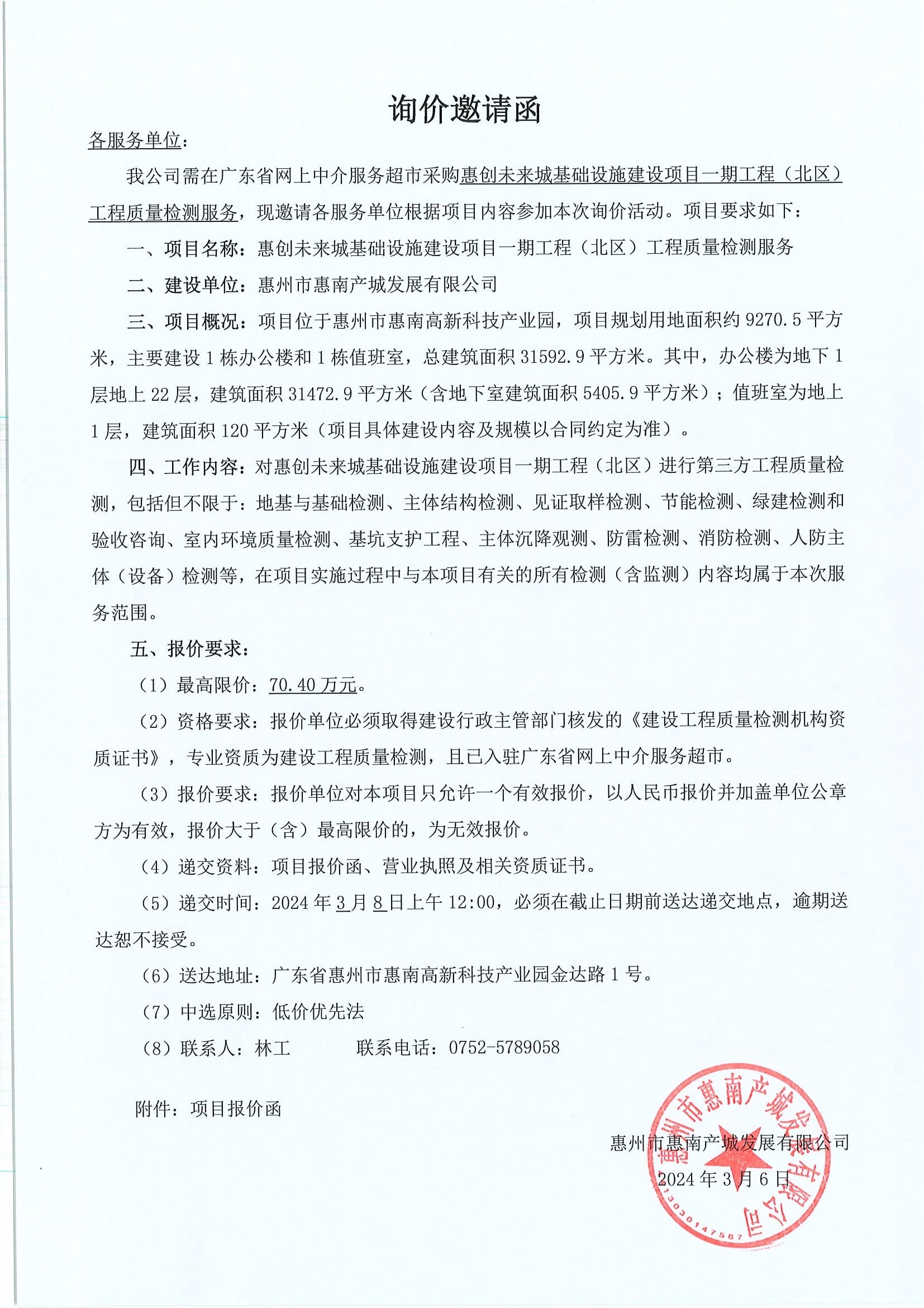 【報(bào)價(jià)邀請(qǐng)函】惠創(chuàng)未來(lái)城廠區(qū)廠房1、2、3、4、5棟建筑設(shè)施防雷檢測(cè)項(xiàng)目