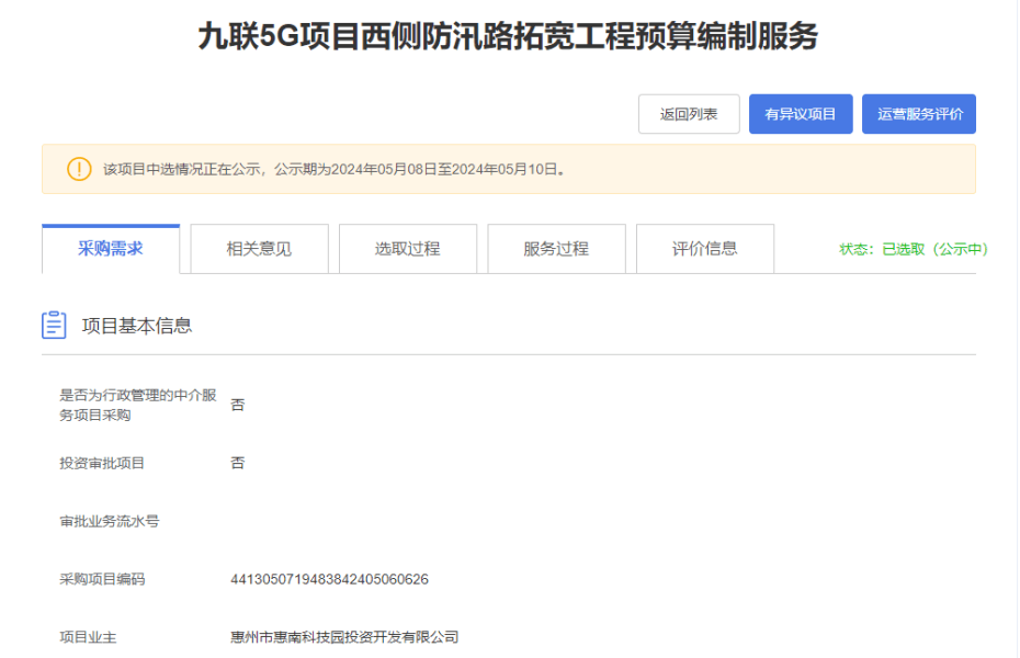 【公示】九聯(lián)5G項目西側(cè)防汛路拓寬工程預算編制服務