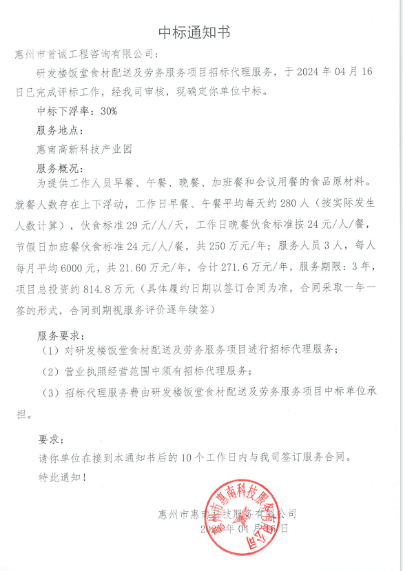 【中標(biāo)通知】研發(fā)樓飯?zhí)檬巢呐渌图皠趧?wù)服務(wù)項(xiàng)目招標(biāo)代理服務(wù)