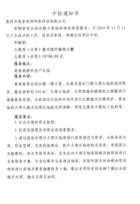 【中標通知】采購管委會綜合樓大堂地磚清潔保養(yǎng)服務(wù)