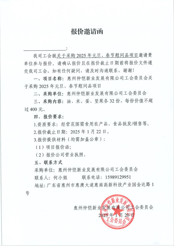 關(guān)于采購2025年元旦、春節(jié)慰問品項目