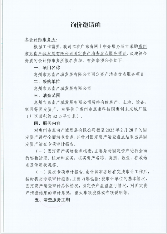 【招標(biāo)公告】惠州市惠南產(chǎn)城發(fā)展有限公司固定資產(chǎn)清查盤(pán)點(diǎn)服務(wù)項(xiàng)目