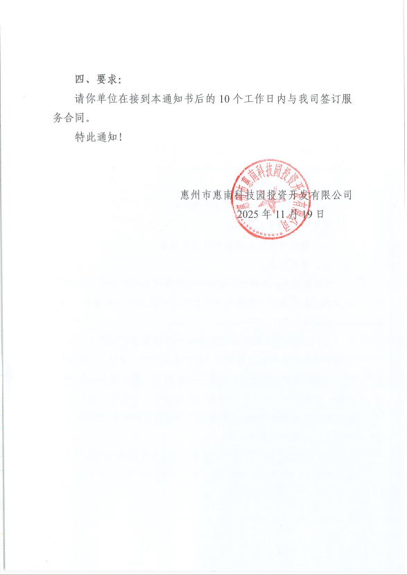 【中選通知】惠州市惠南科技園投資開發(fā)有限公司股權(quán)投資企業(yè)前期法律盡職調(diào)查服務(wù)項(xiàng)目